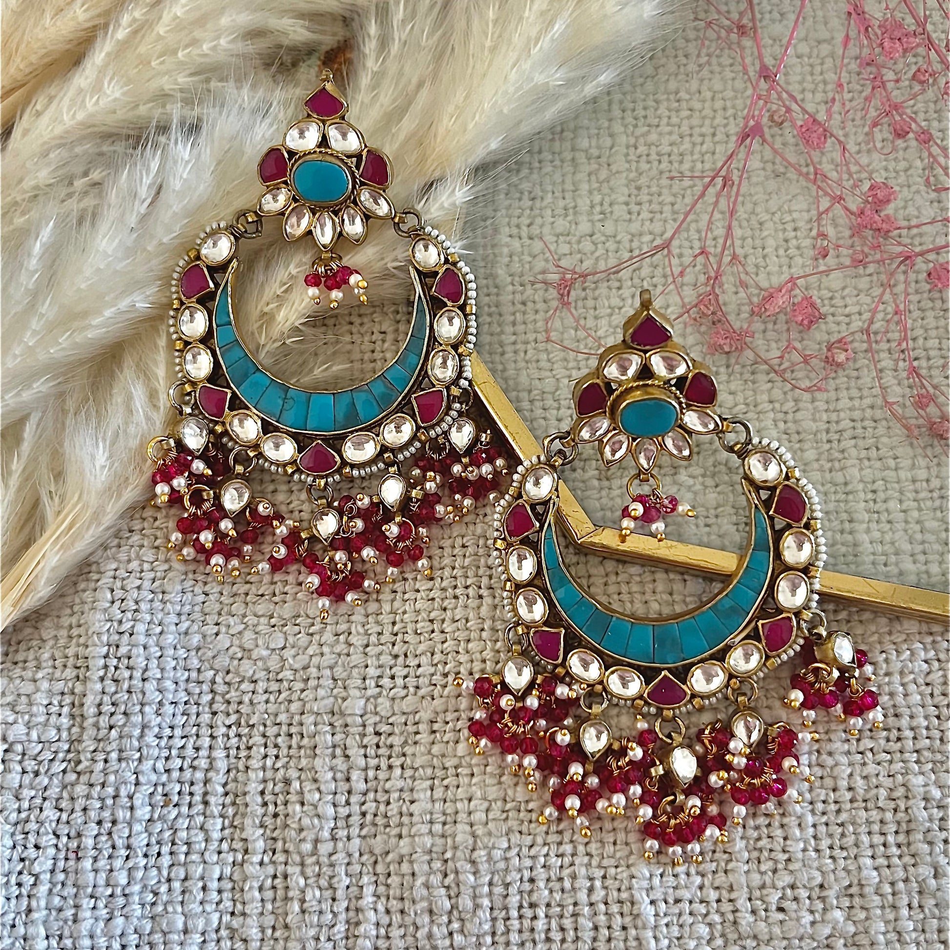 The 'Loona' Chandbalis are perfect for any festive occasion. Made with high-quality semi-precious stones & kundan, it exudes a timeless elegance.