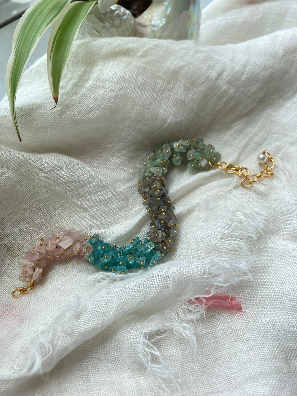 Introducing the "Sunset Mosaic" Gemstone Bracelet – a wearable piece of art that captures the ethereal beauty of twilight skies. This enchanting bracelet features a lavish array of gemstones in a gradient of colors, reminiscent of a sunset's transformative hues.