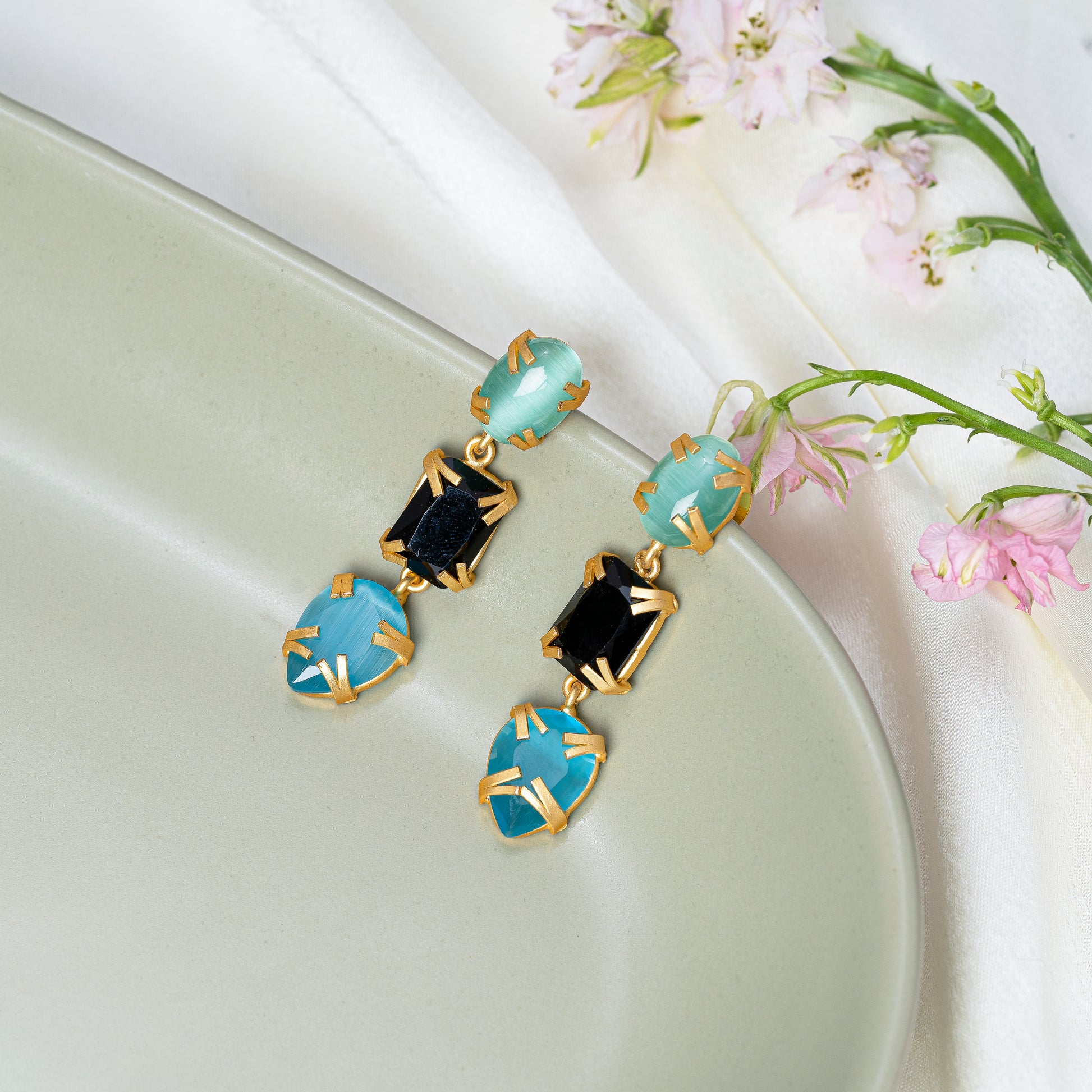 The Blake earrings are an absolute stunner featuring multicolored stones.This chic design can go with almost everything.