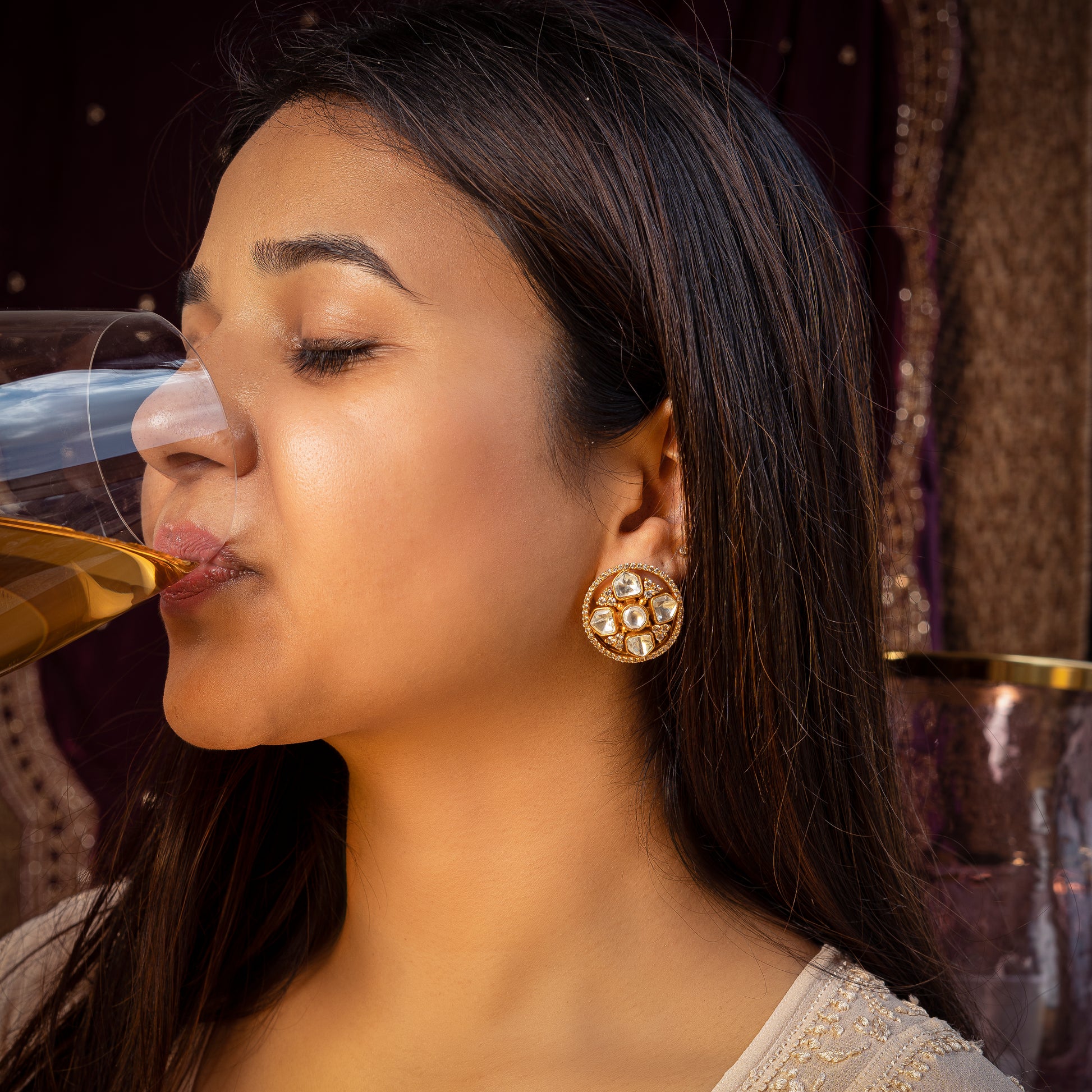 TheMora studs take us back to the age-old Indian jewelry techniqueswith a modern twist of the liking of a new-age woman. Invoking the celebration of heritage and colors, the polki pair will be your perfect companion to your rich handwoven sarees.